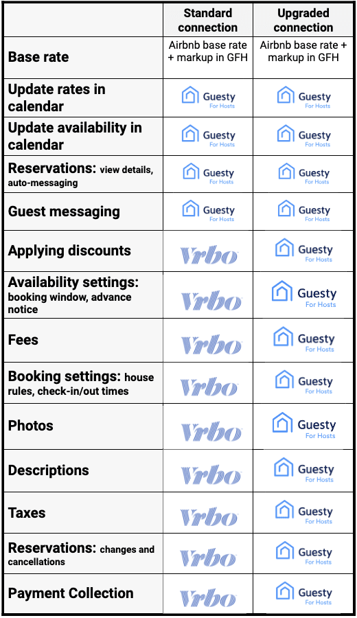 Upgraded Connection Vrbo listings are synced with your Airbnb listing settings in Guesty For Hosts. See here for more information.